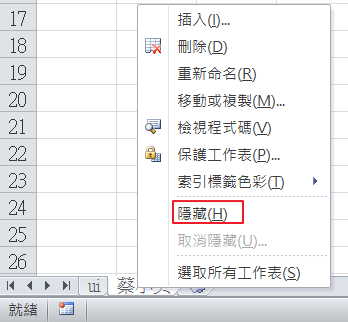 在主畫面中有個「隱藏」,就是把除了”ui”外的所有活頁簿,都隱藏起來。其程式碼如下