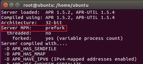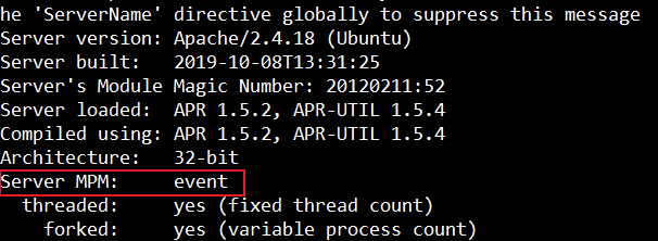 一般預裝的Apache會使用 Prefork MPM,因為這是相對穩定的模組了,為了最佳相容性,預設會啟用Prefork。當然也不是說 Event MPM不穩不相容,這都是相對於Prefork的。要怎麼知道自己用的 Apache 是否啟用 Event MPM 了呢?可以用下面指令來觀察使用的 MPM。