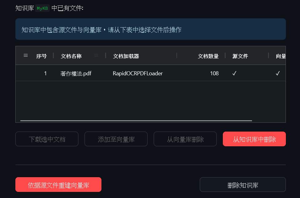Entering the knowledge base management, you can perform operations such as creating and uploading files. Let’s try downloading the Copyright Act from the Ministry of Justice link. Downloading a PDF should work.