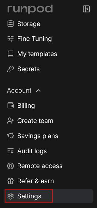 到 RunPod 設定 SSH Public Key