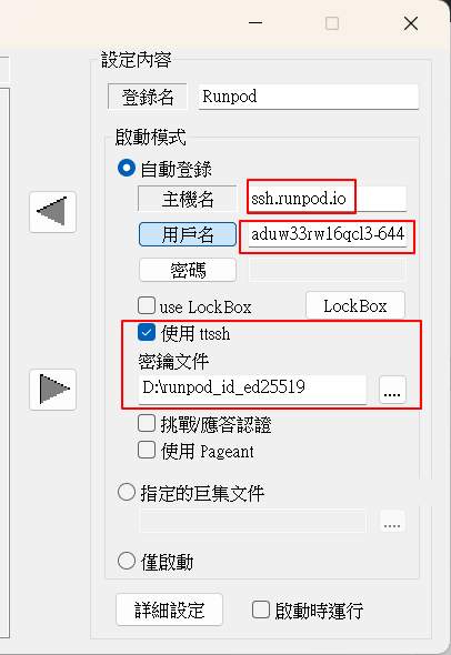 d:\ssh_keys\runpod_ed25519 → Private Key(私鑰)