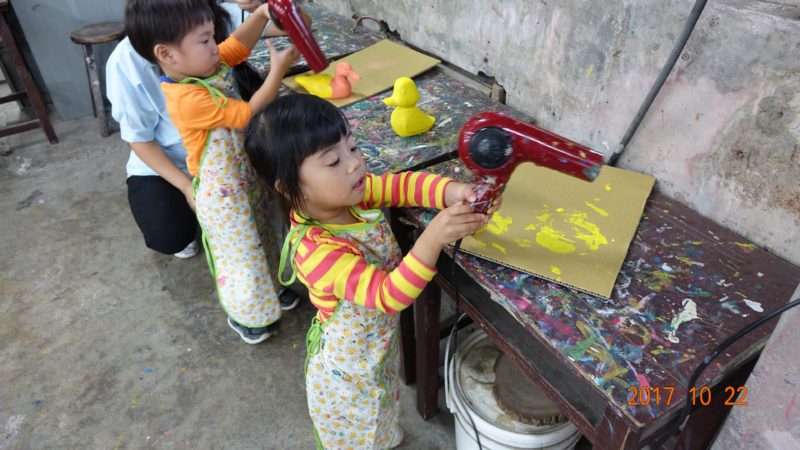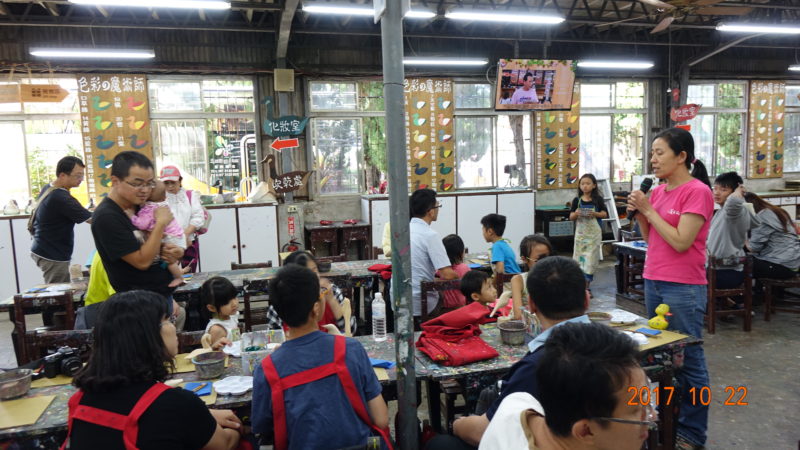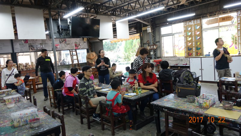 本次行程的最後一站,到了老少閑宜的光觀工廠《鴨箱寶》彩繪工廠。每個家庭可以拿到兩隻原木的鴨鴨或其它圖案。我們拿的是兩隻不同的鴨,本來是不太想畫的。但為了讓小孩也能同樂+照相,只好也硬著頭皮一起做。
