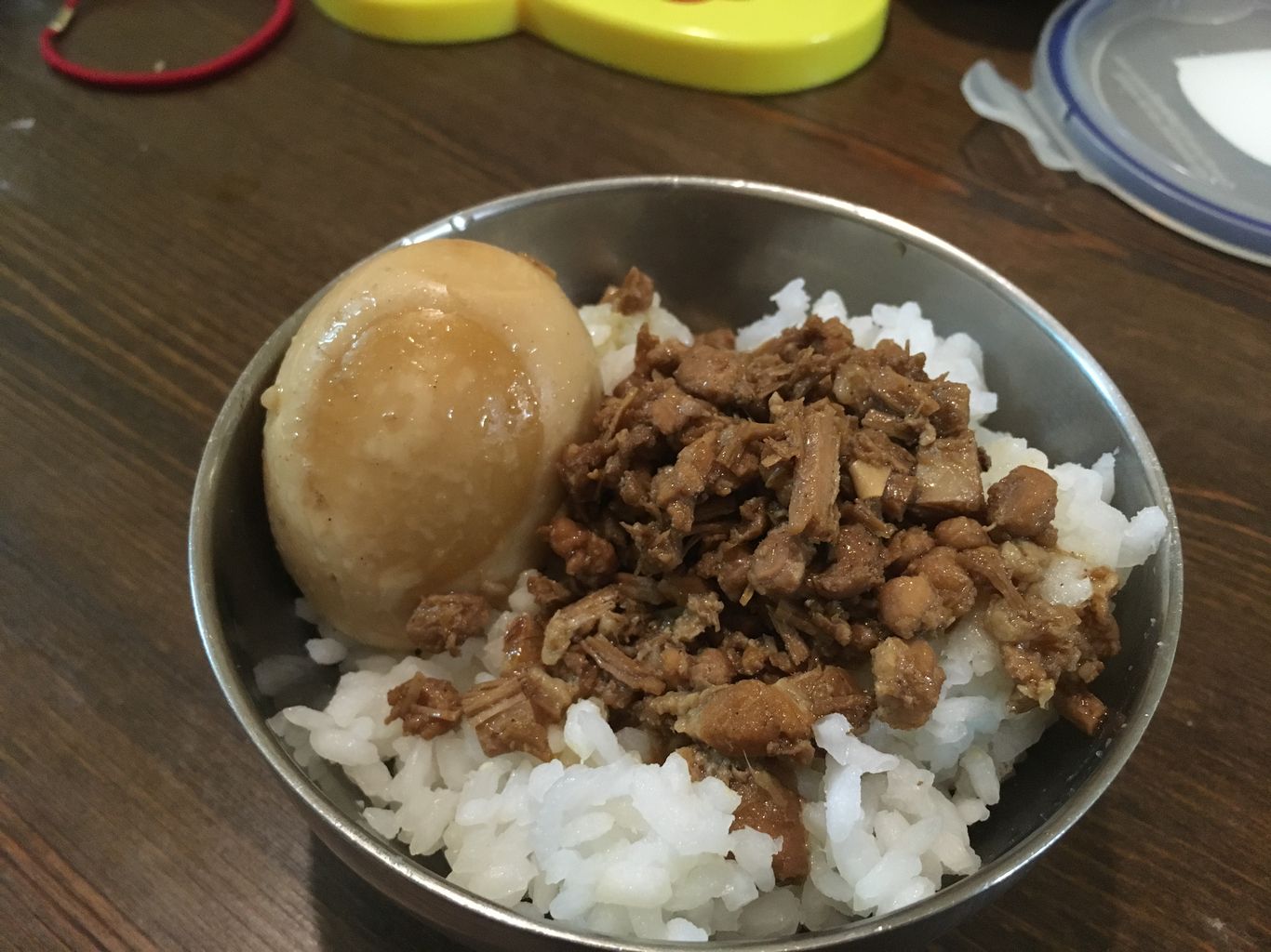 吃爸鼻魯肉飯囉! 我一直還蠻愛吃魯肉飯的,雖然不是說很常吃,因為簡簡單單一碗白飯加上一些魯肉就要幾十塊,總感覺不怎麼划算。在 7-11 看到的肉醬,一個也要四十幾塊,還真是高貴…正巧這次回家掃墓後,有